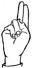На ћирилици написано ВАСИЛИЈЕ ДАНГУБИЋ састоји се из 16 слова [?]. Исписано ћириличном једноручном азбуком за глувонеме: